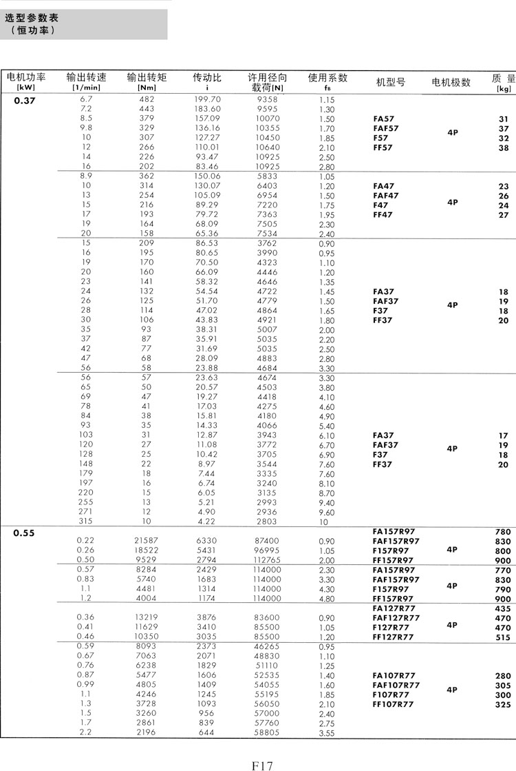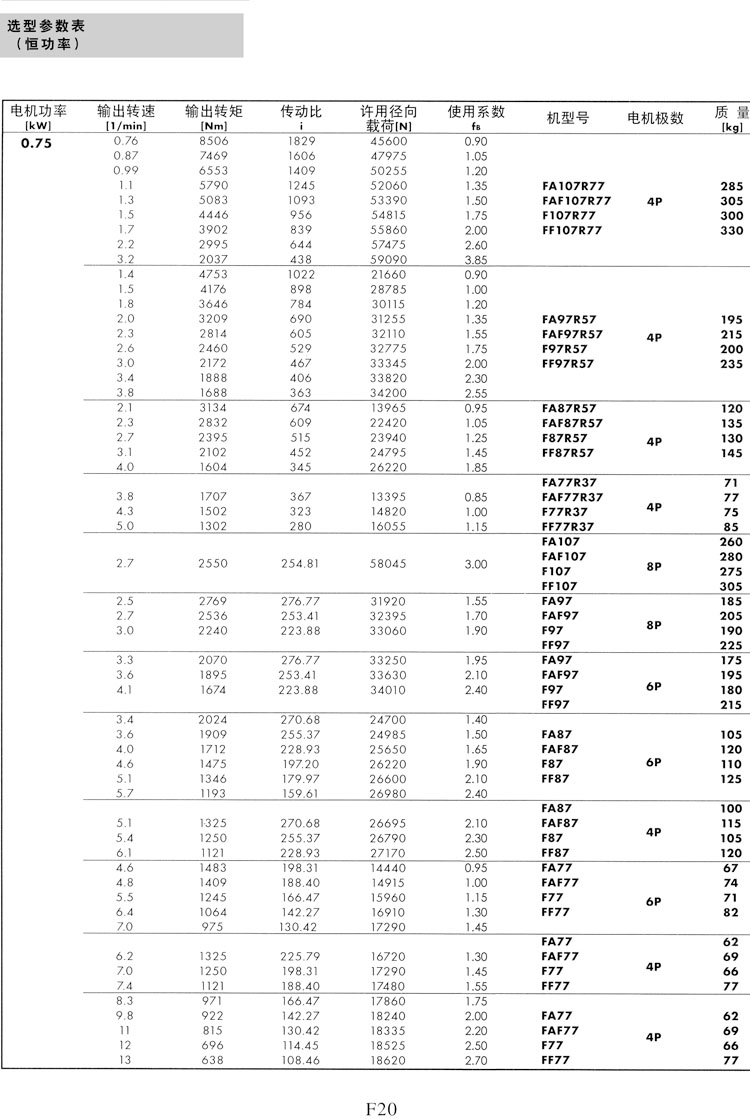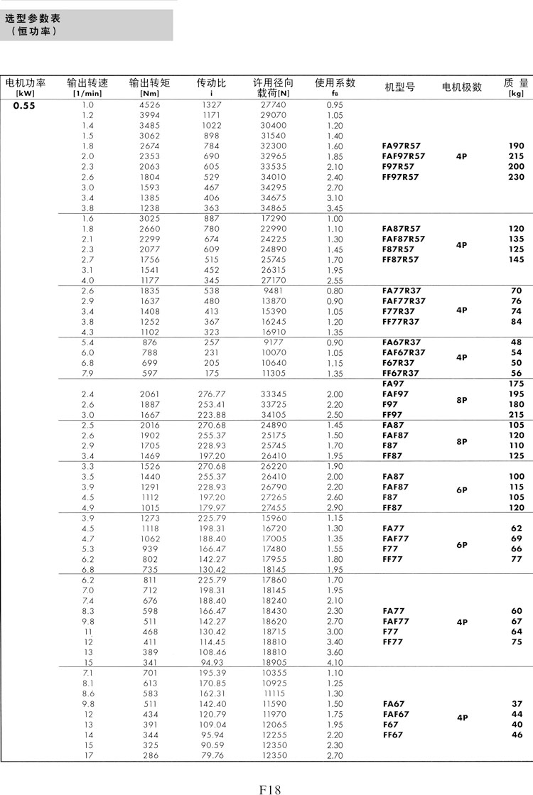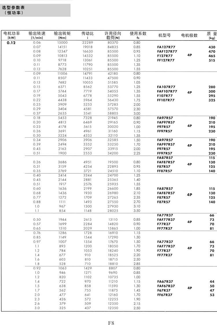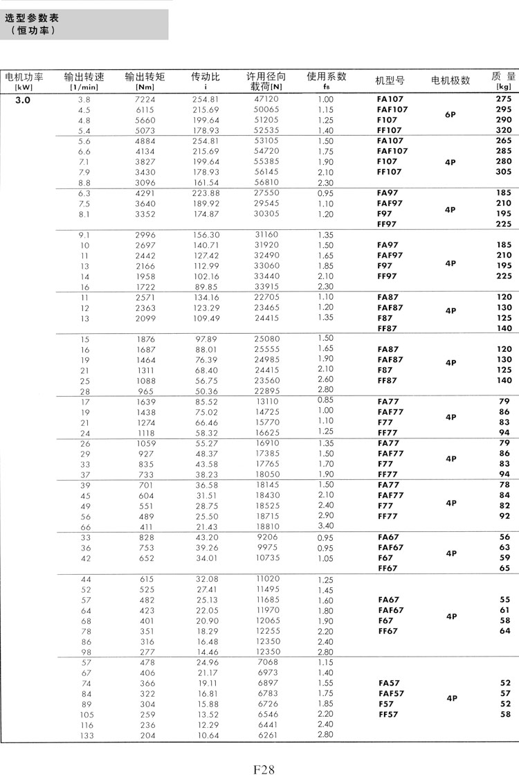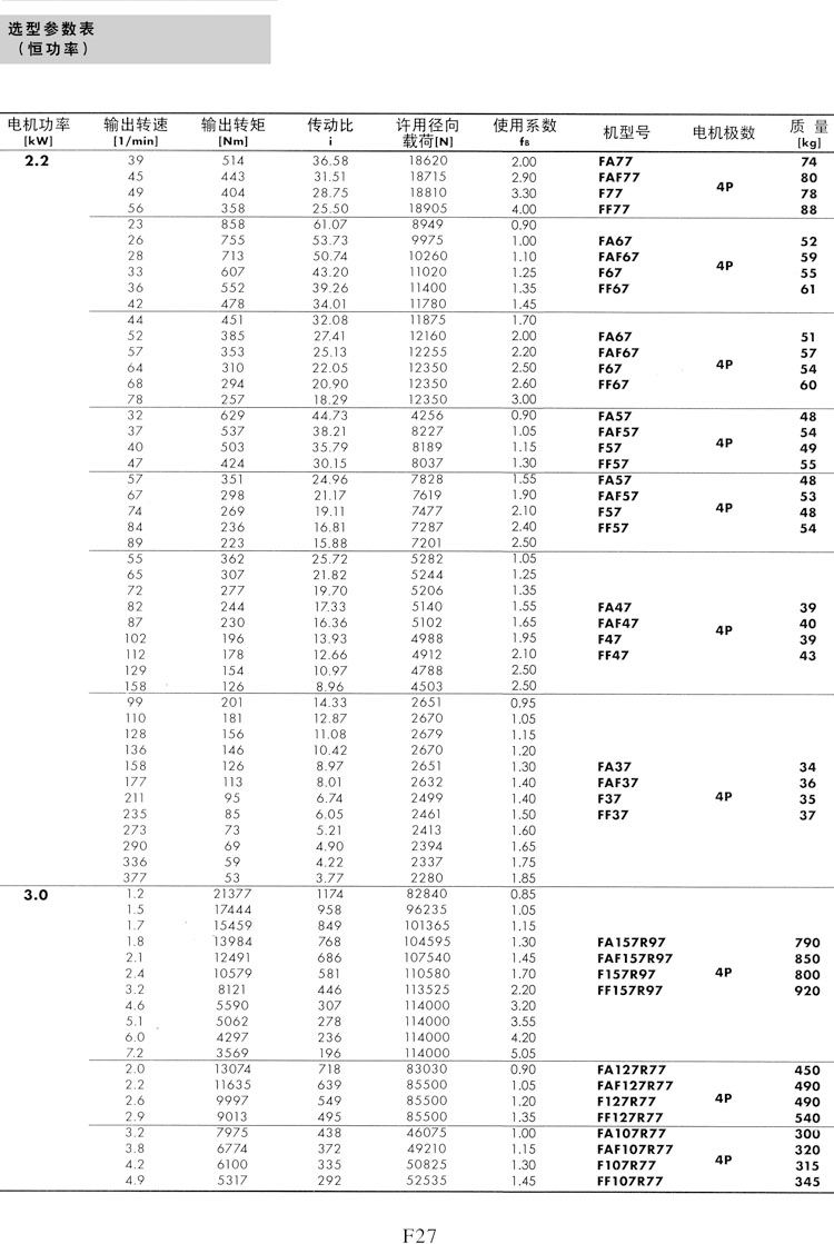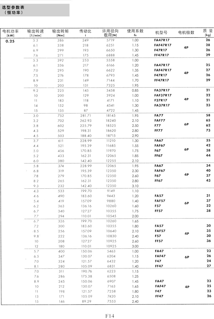 F系列選型參數(shù)表