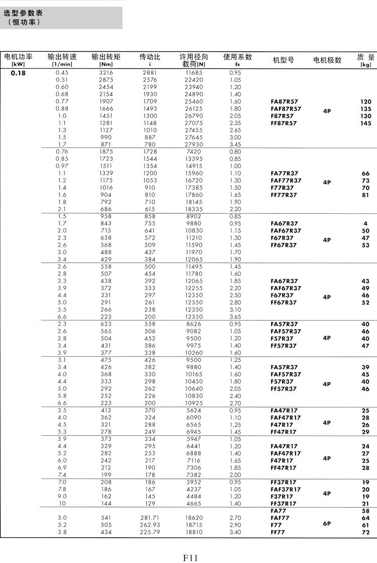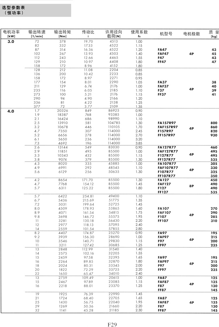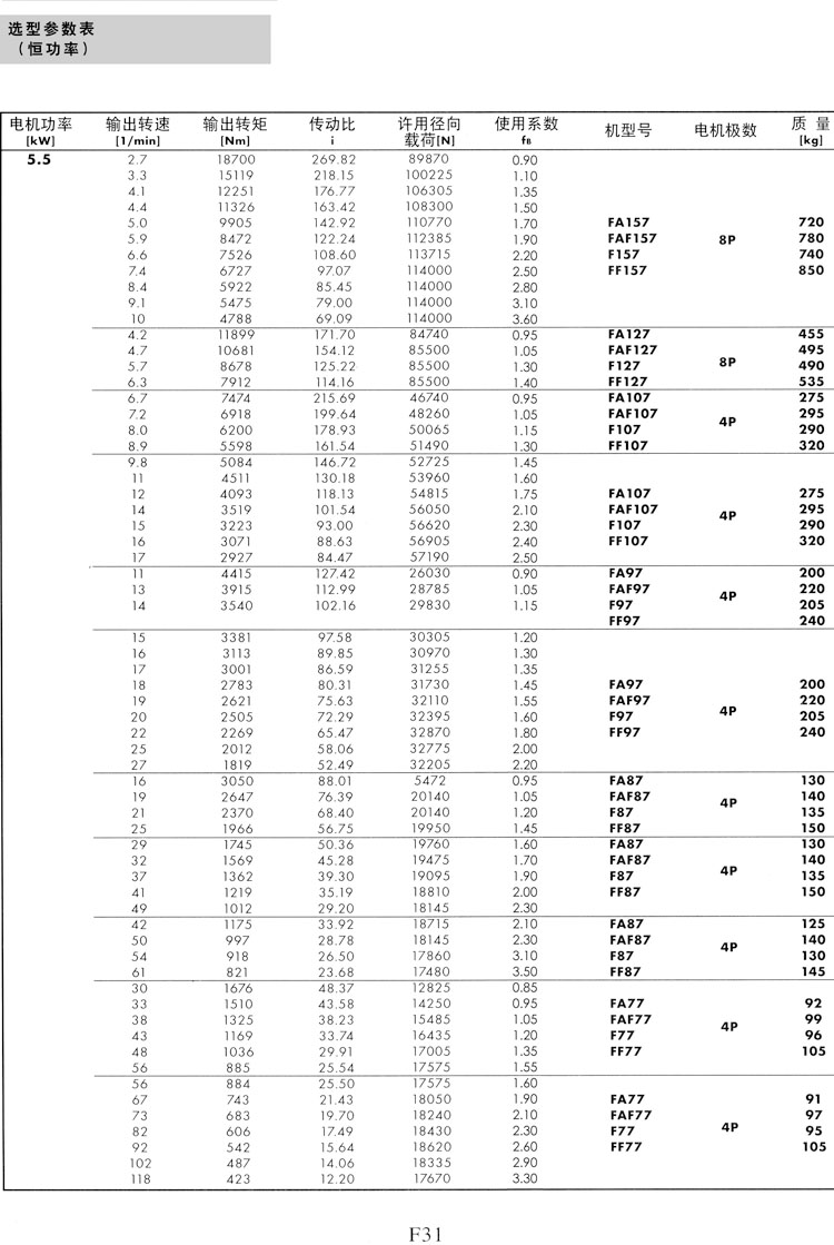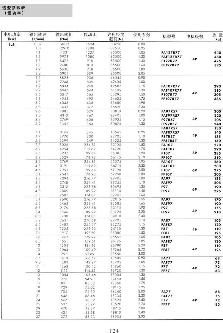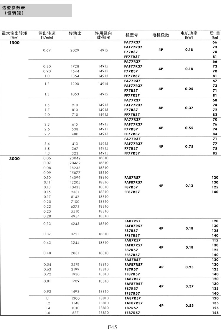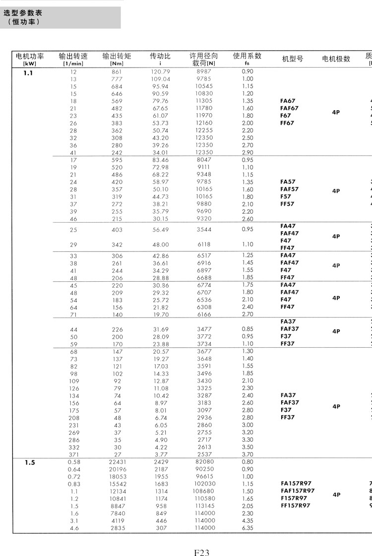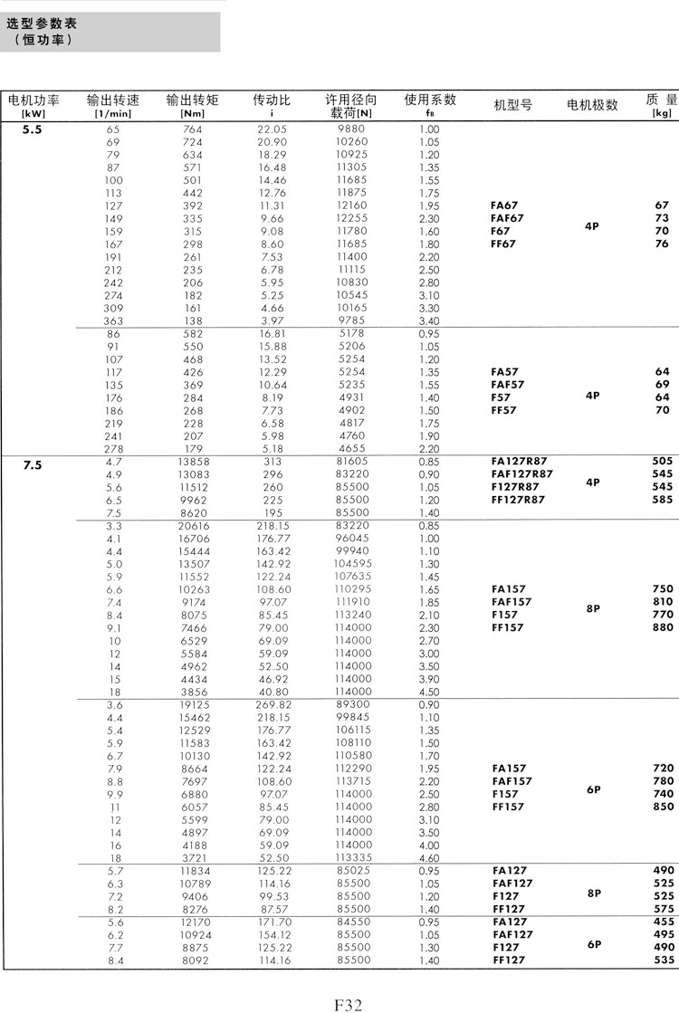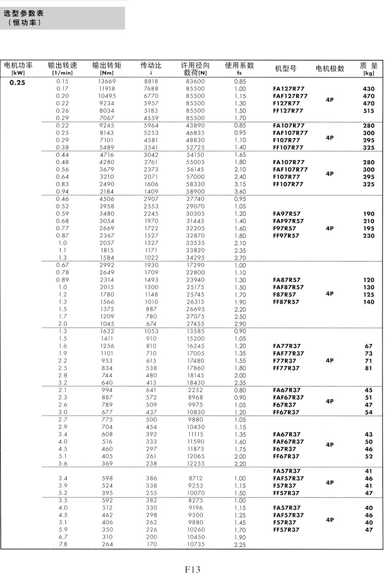 F系列選型參數(shù)表