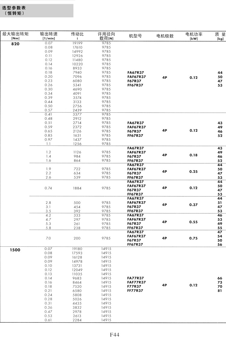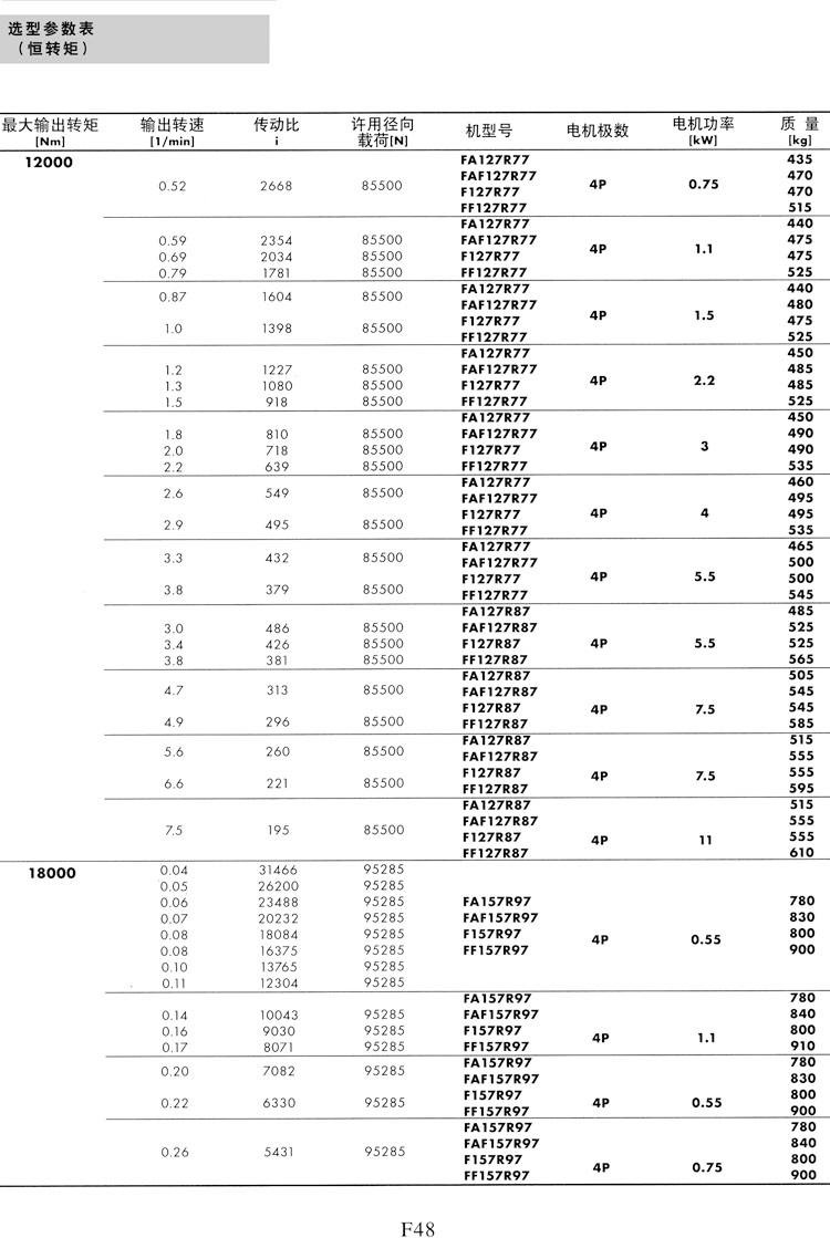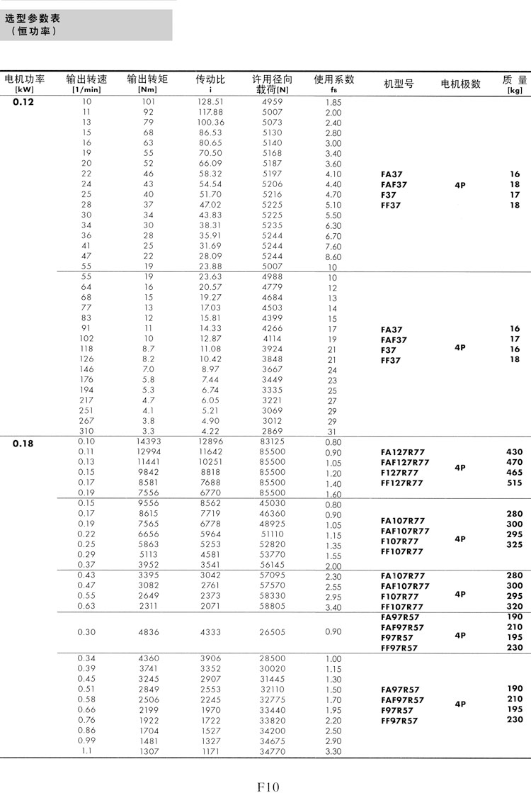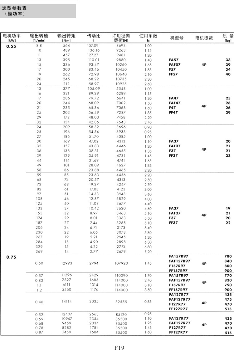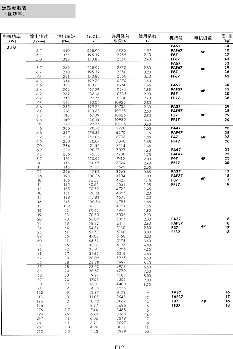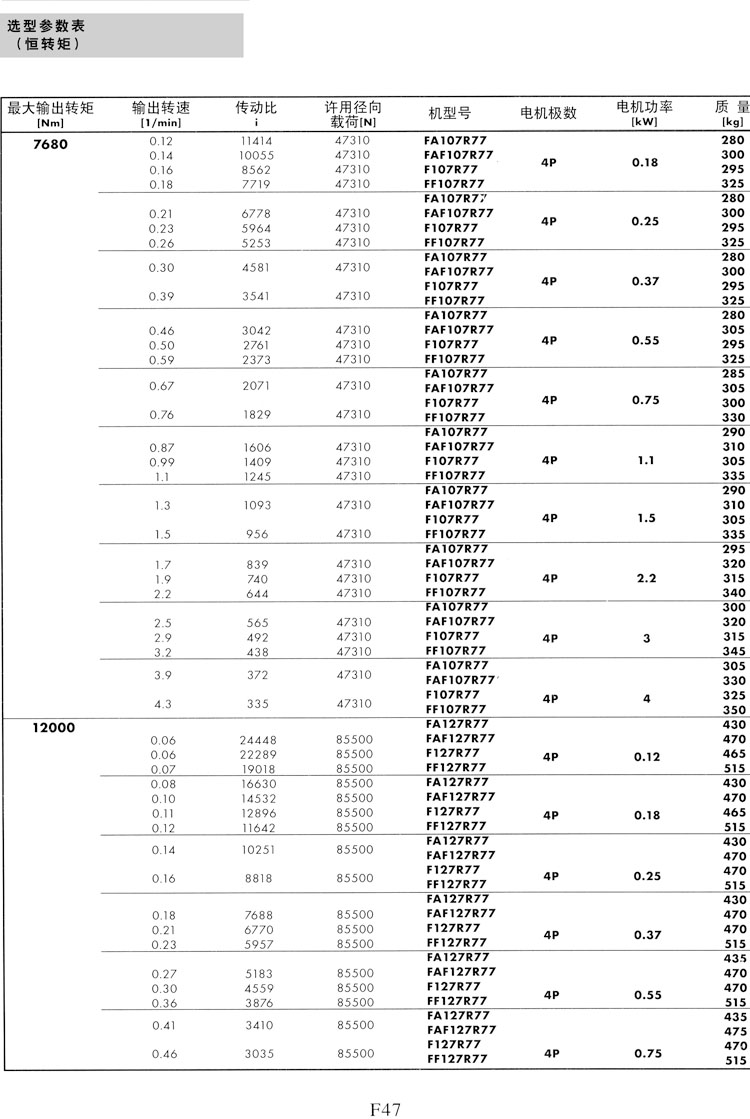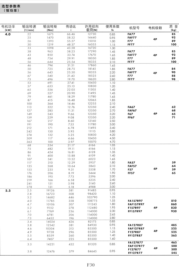 F系列選型參數(shù)表