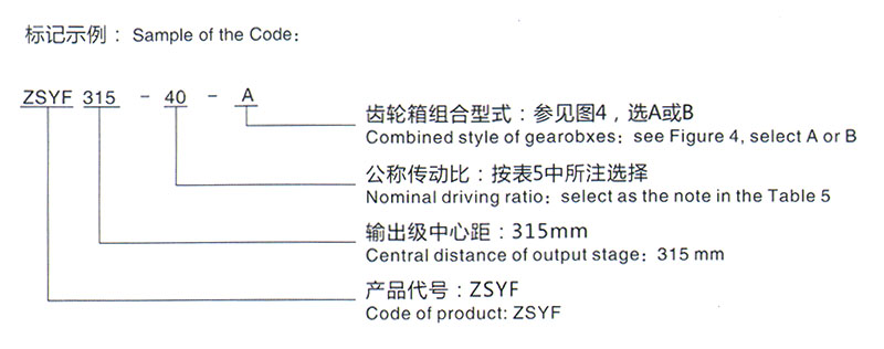 齒輪箱的代號中,包括型號、輸出及中心距、公稱傳動比及組合形式。