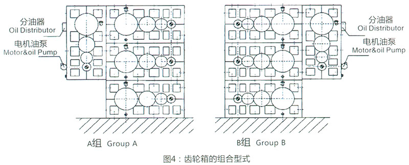 2、本系列齒輪箱適用于多輥壓延機(jī)的傳動,選用時必須注明齒輪箱的組合型式和數(shù)量。